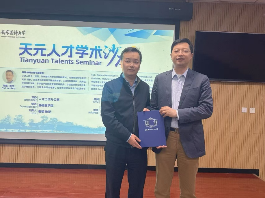 4月16日下午,我校在学海楼D002报告厅举办第二十四期“天元人才学术沙龙”。本次沙龙由人才工作办公室主办,基础医学院、天元书院协办。沙龙邀请到天津医科大学总医院副院长、天津市神经病学研究所所长--刘强教授作为嘉宾。会议由学科建设与发展规划处处长、基础医学院鲁明教授主持。